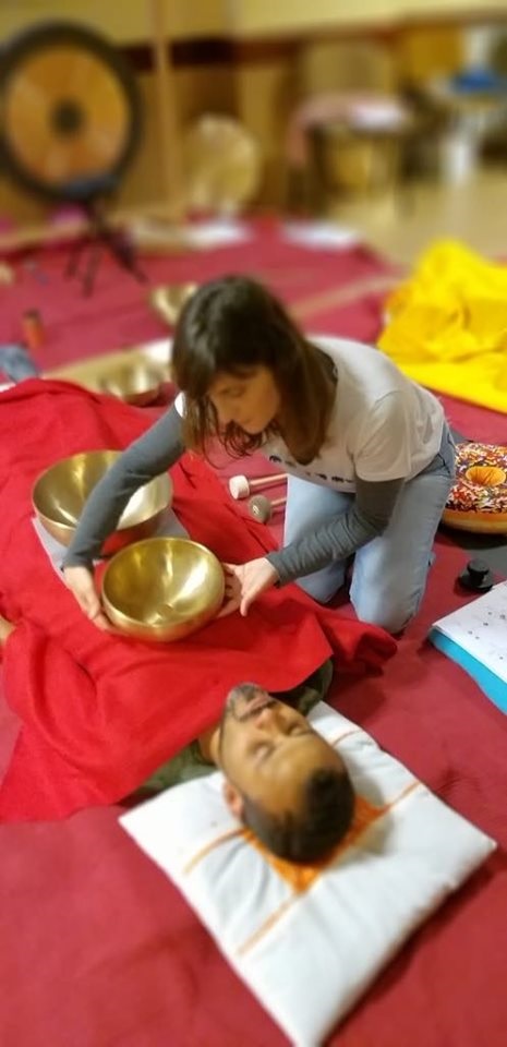 A massagem/terapia de som é muito mágica e especial, e às taças da bacia, do coração, da cabeça, universal e zen, junto, nessa viagem interior, o gongo, o zaphir, o tambor oceânico e os diapasões que são “dedos” incríveis a massajar e a harmonizar as nossas ondas cerebrais.